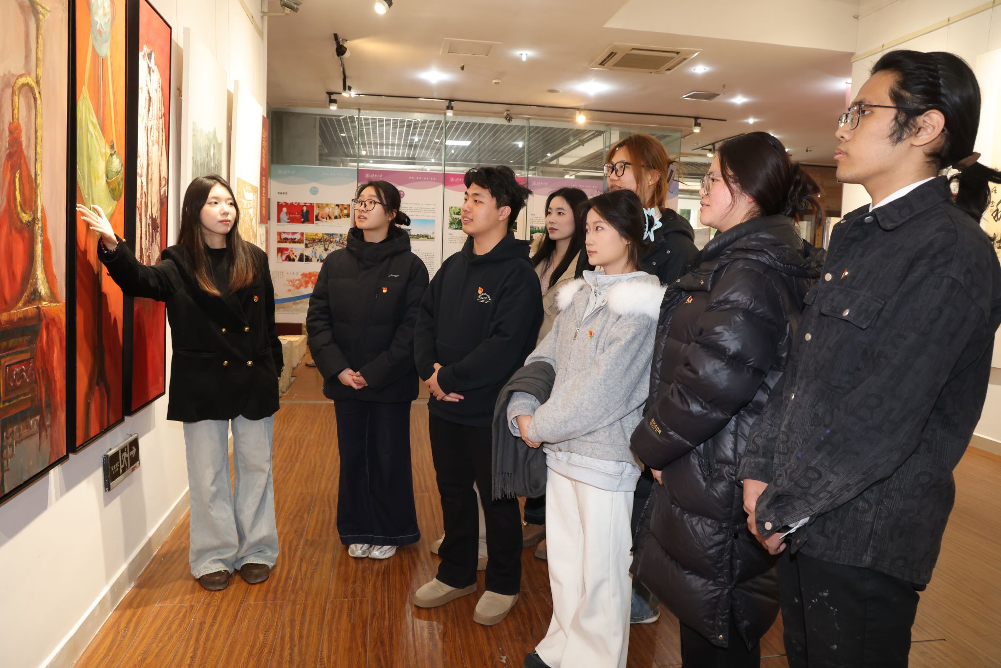此次展览紧扣纪念“一二·九”运动90周年主线,聚焦“丹青红韵、铭史铸魂、爱国担当、赓续相传”主题,分为“山河危局·历史回响”“精神永续·青春向上”“砥砺奋进·自信自强”三个单元。本次展览共收到来自全校各部门、各单位的各类投稿300余件,最终展出包含中国画、油画、版画、水彩(水粉)、综合材料以及书法篆刻等129件作品。展览通过对“一二·九”运动历史场景、爱国主义精神赓续弘扬以及新时代中国式现代化建设火热实践的整体呈现,在统一的艺术叙事中贯通历史记忆与时代画卷,集中体现“一二·九”精神在新时代激励青年坚定理想信念、厚植家国情怀、投身强国建设的时代价值。师生一致表示,展览使大家更加深刻体悟到革命先辈矢志报国的家国情怀和信仰力量,将自觉把这堂特殊的党课转化为听党话、跟党走的行动自觉,在今后的学习、创作和实践中不断提高政治素养和专业能力,把爱国情感和责任担当落实到具体行动中,努力成长为堪当民族复兴重任的新时代青年。
