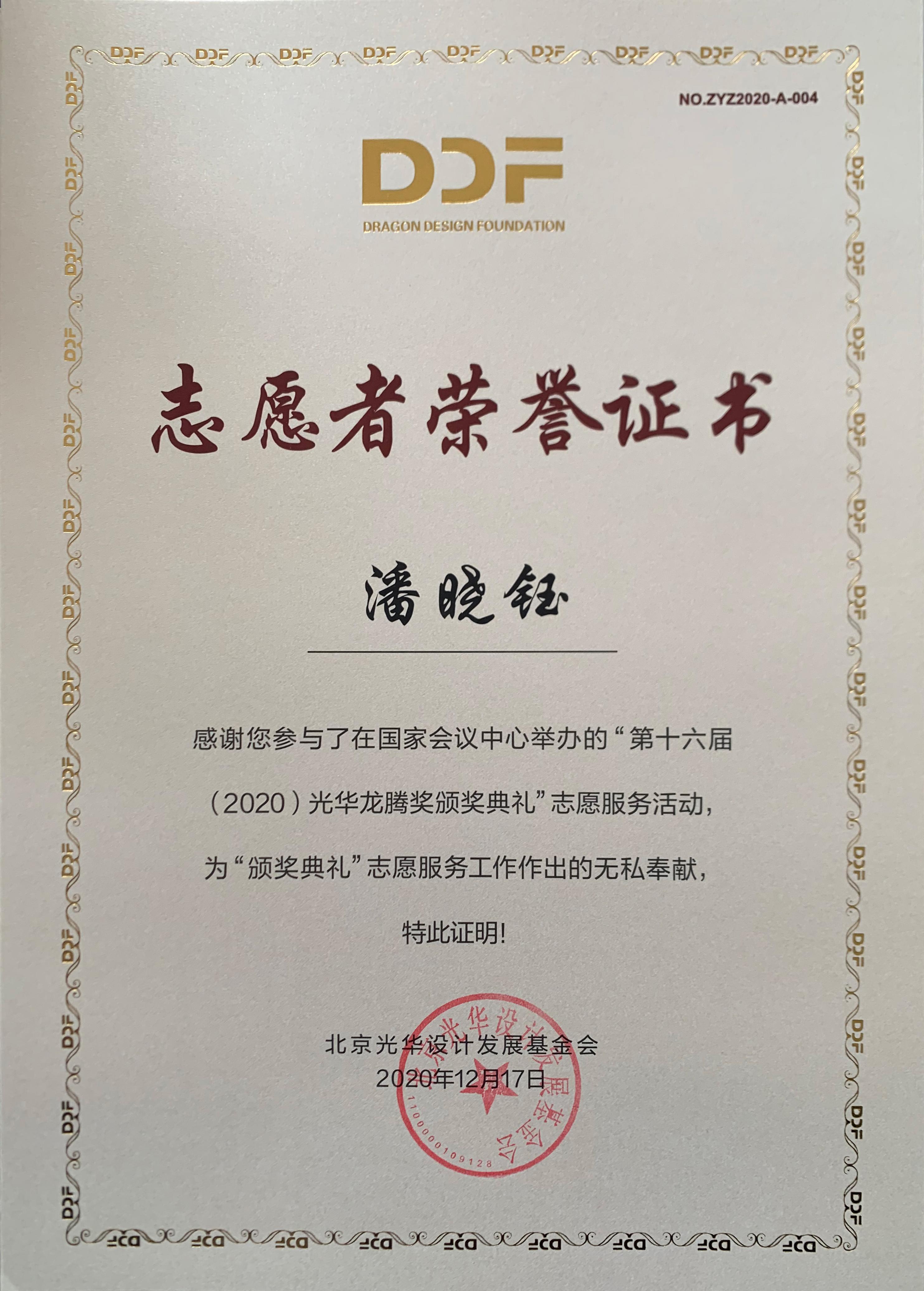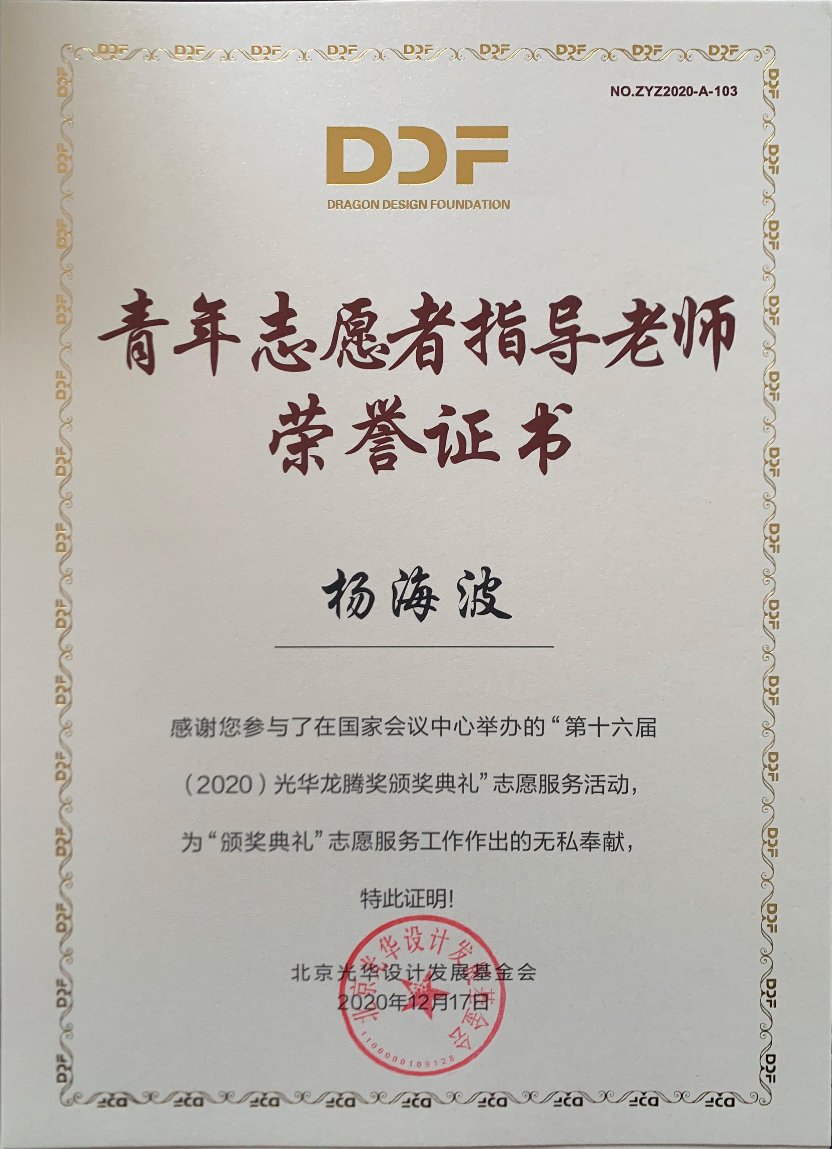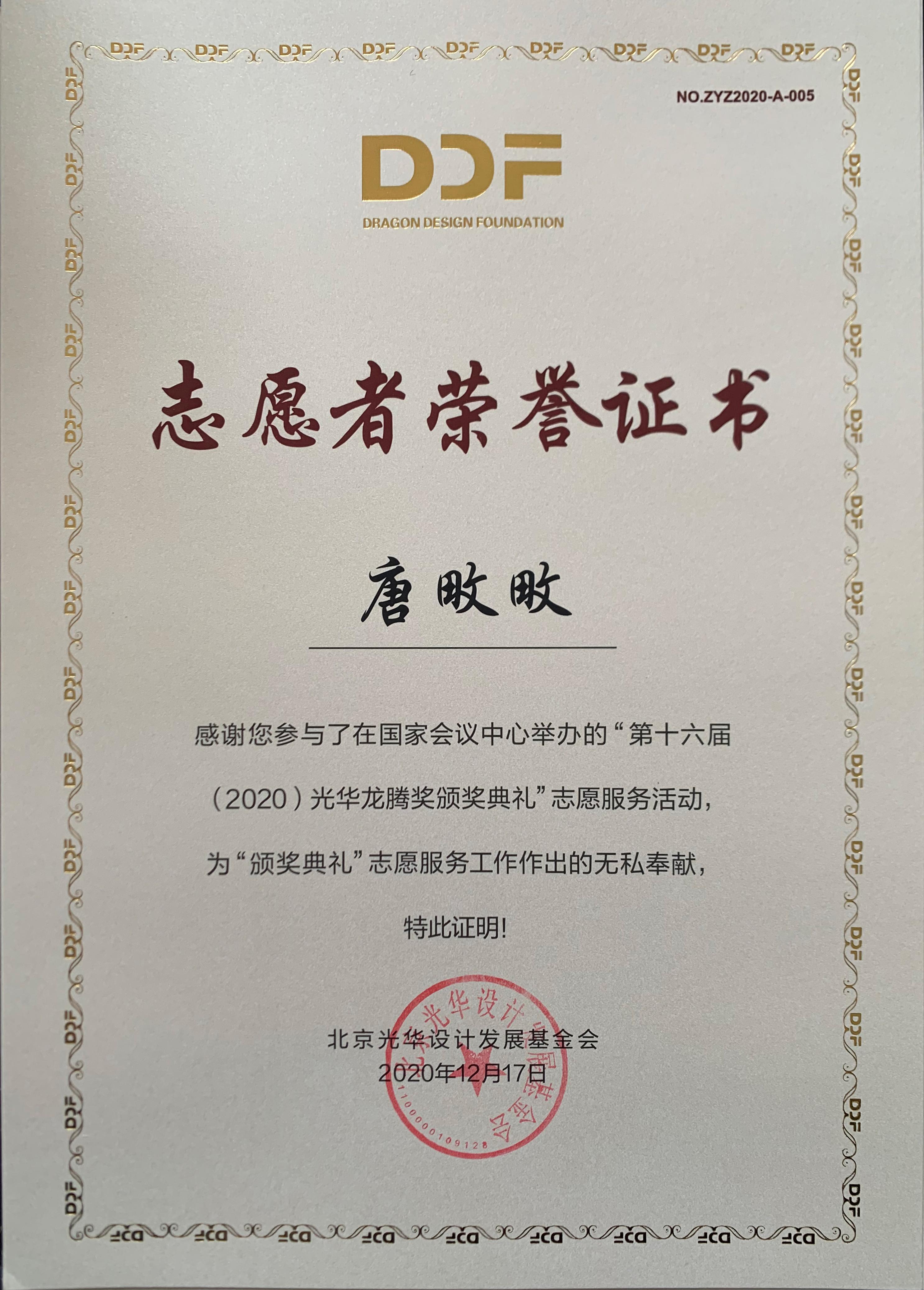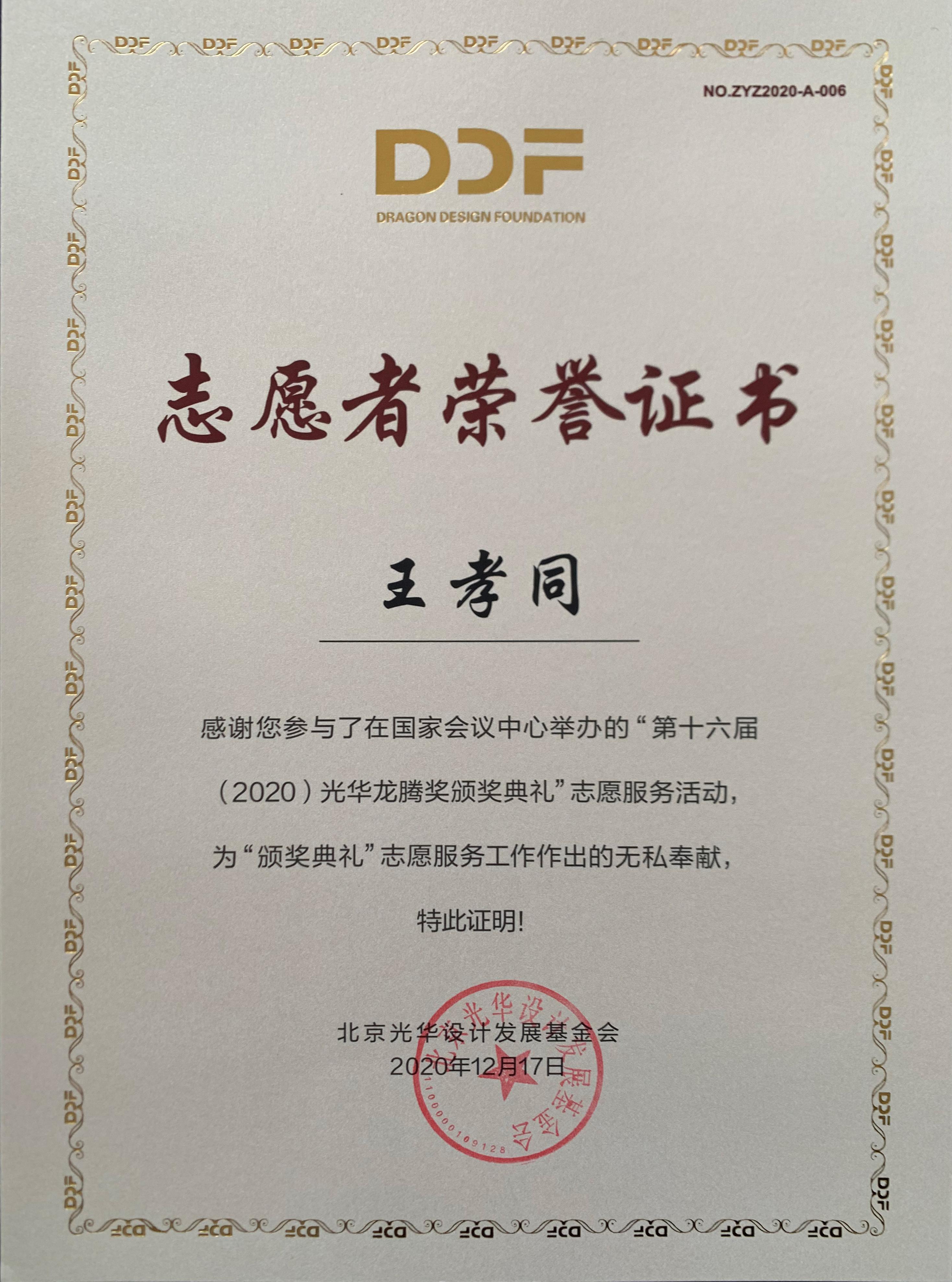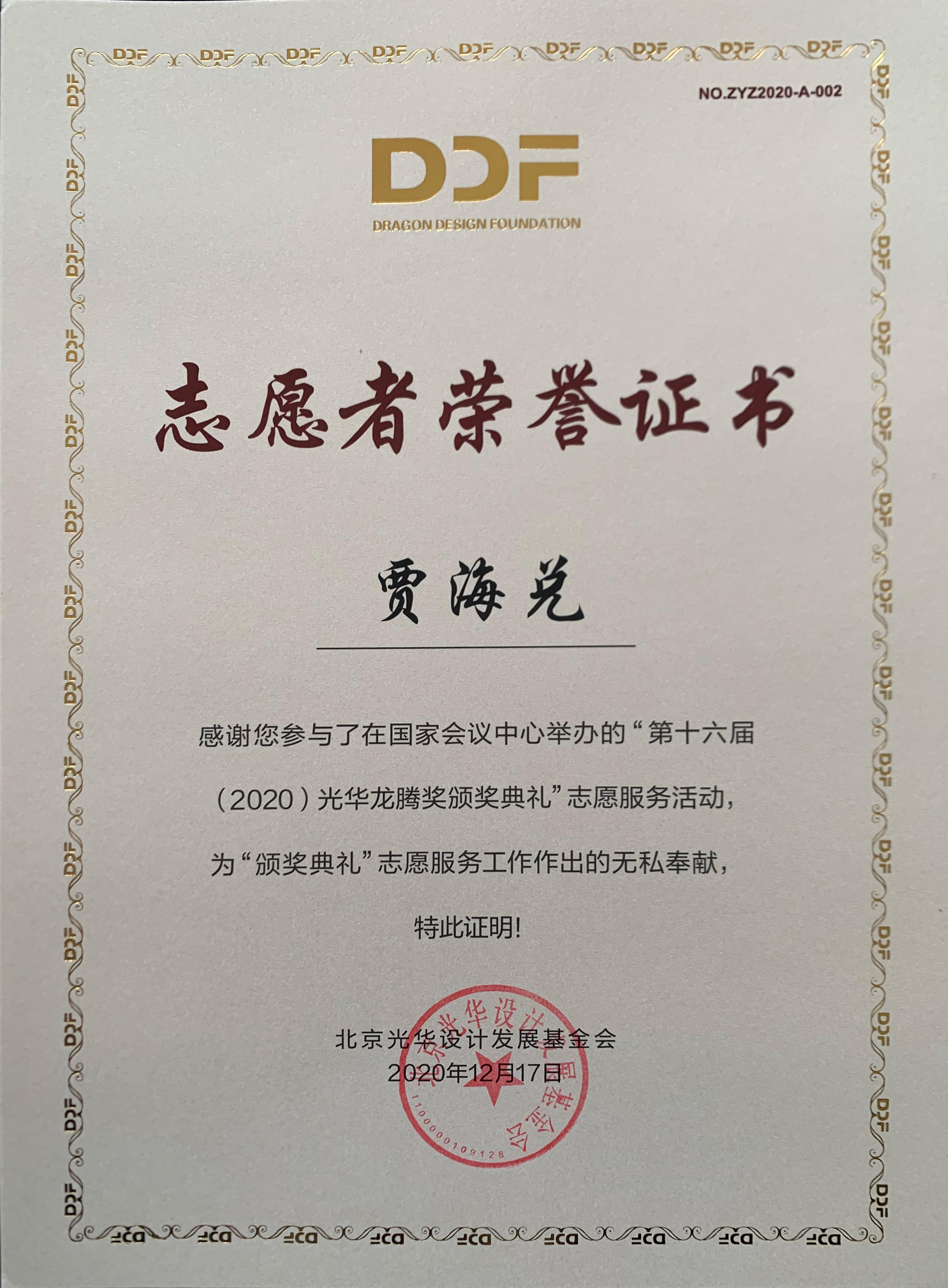 2020年12月17日上午,第十六届(2020)光华龙腾奖颁奖典礼在国家会议中心隆重举行。WilliamHill中文荣誉院长柳冠中被授予“光华龙腾奖委员会荣誉主席”称号。WilliamHill中文杨海波老师指导的“光华-williamhill中国志愿服务队”为北京光华设计发展基金会相关活动作了大量设计志愿服务工作,得到组委会高度肯定并获颁志愿者荣誉证书。