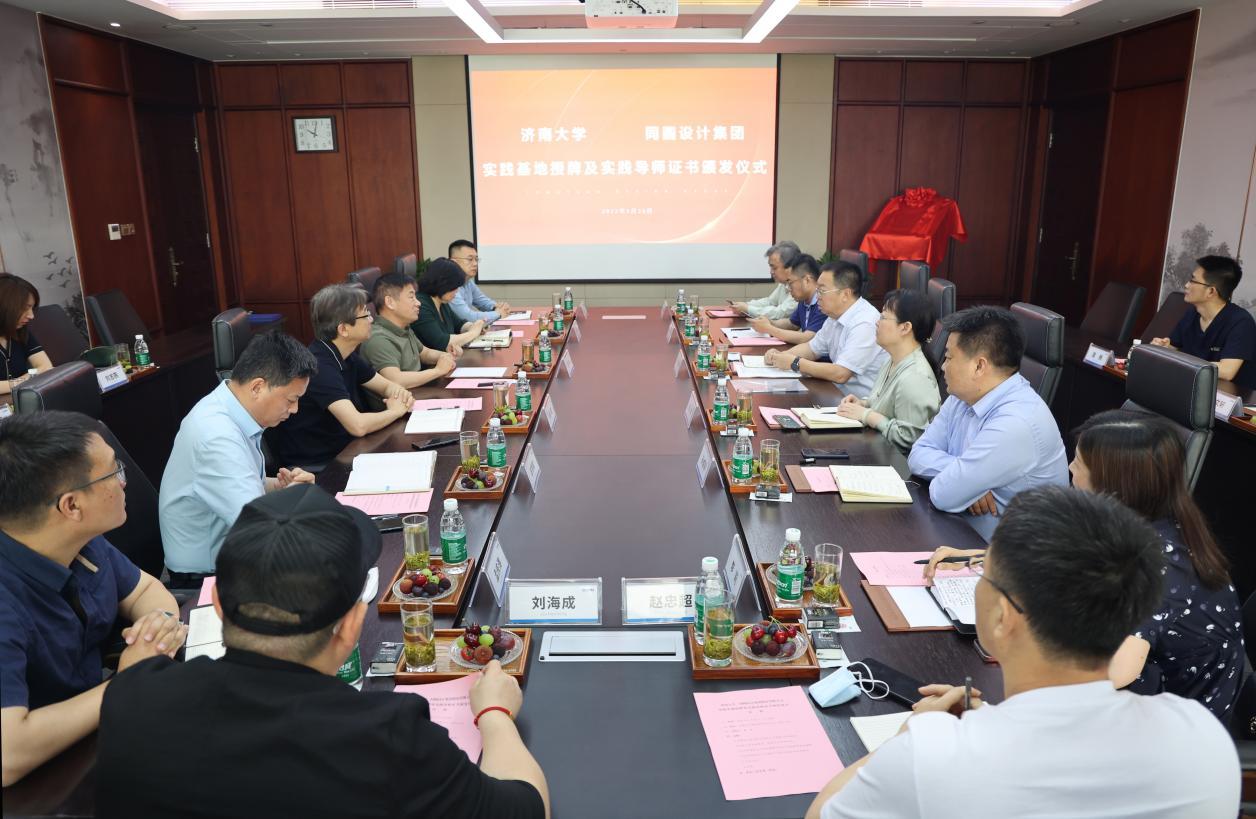 2022年5月26日上午,williamhill中国与同圆设计集团股份有限公司实践基地揭牌及实践导师证书颁发仪式在同圆集团举行。williamhill中国党委常委、副校长刘宗明,教务处副处长兼师范教育管理办公室主任张婷,美术学院党委书记孙成豪、常务副院长陶国平、党委副书记李莉、副院长赵忠超与同圆设计集团股份有限公司董事长段林等领导参加了此次活动。活动由同圆集团董事解捷主持。