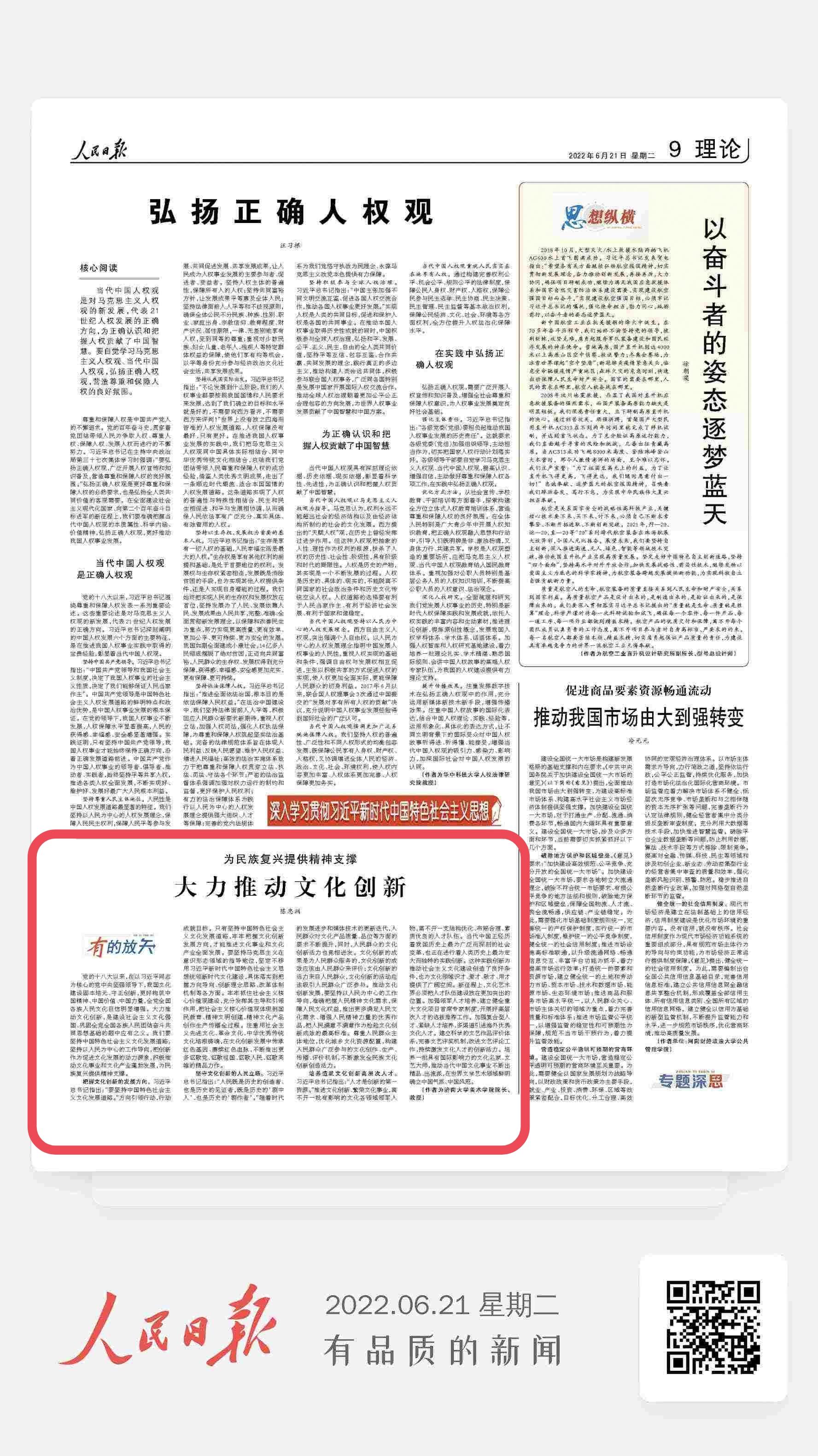 6月21日,人民日报理论版刊发了WilliamHill中文院长陈忠洲教授文章《为民族复兴提供精神支撑 大力推动文化创新》。