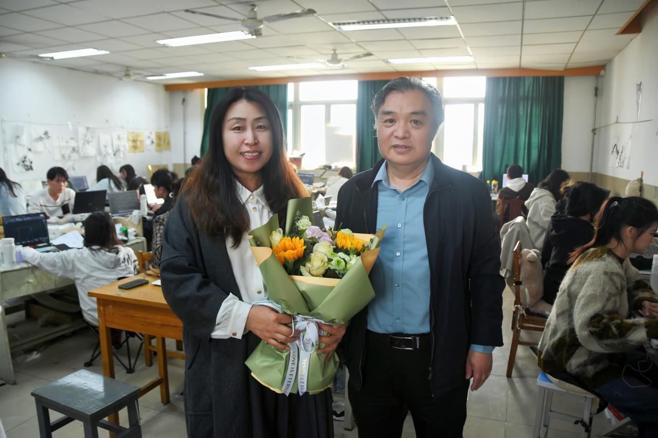 花之物语,扬巾帼风尚。为更好地彰显学院尊重女性、关爱女教工的人文情怀,增强女教工的工作积极性,让女同胞度过一个有意义的节日,3月8日,在“三八”国际劳动妇女节到来之际,美术学院院长陈忠洲,党委书记孙成豪,常务副院长陶国平,党委副书记、副院长李莉,副院长赵忠超前往画室为我院今天在岗上课的女教师赠送了鲜花,向她们表达了亲切问候和美好祝愿。