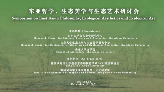 2021年12月18日,我院产品设计系教师、山东大学博士后张嫣格老师参加了由文学院文艺美学研究中心、韩国成均馆大学儒学东洋韩国哲学系BK21教育研究团、韩国成均馆大学东洋哲学、文化研究所联合举办的“东亚哲学、生态美学与生态艺术”研讨会,采用线下线上结合的方式召开。开幕式由文学院文艺美学研究中心副主任程相占教授主持,文艺美学研究中心主任谭好哲教授、韩国成均馆大学东洋哲学、文化研究所所长白英宣教授出席会议并致辞,文艺美学研究中心名誉主任曾繁仁教授、韩国成均馆大学儒学大学长辛正根教授为本次会议作主旨发言,与会的还有来自文艺美学研究中心与韩国成均馆大学东洋哲学系的专家学者。
