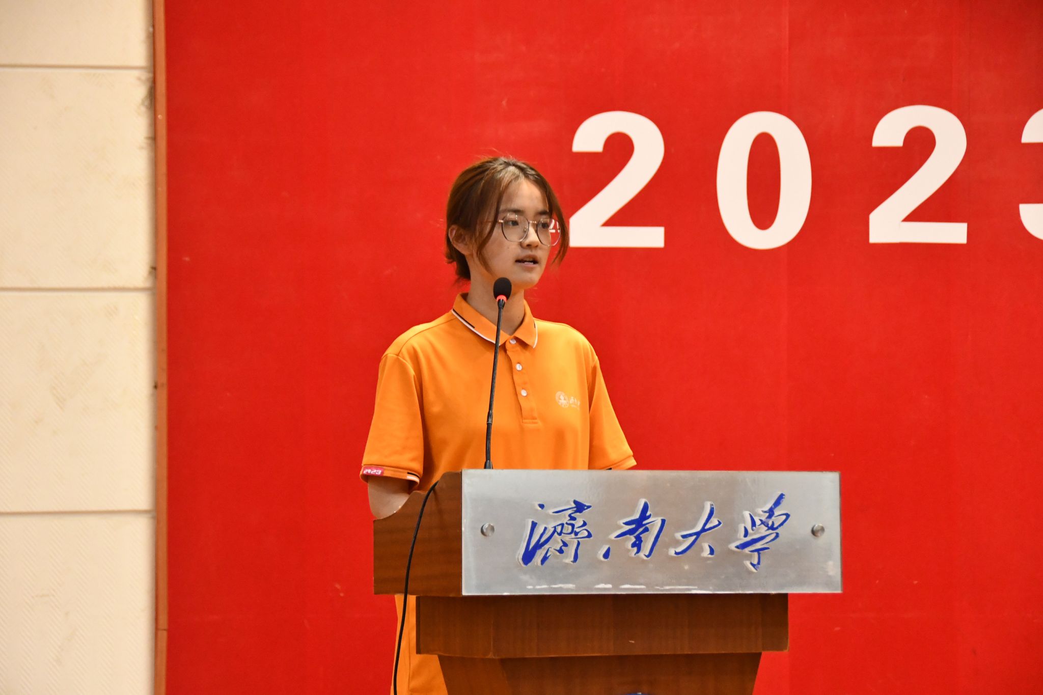 丁奕翔副教授作为教师代表发言,希望同学们尽快适应大学环境实现角色的转换,把学习作为首要任务,珍惜时间,把握时机,不断充实自己,成为社会栋梁。在校生代表环艺2101班刘佳茗,鼓励师弟师妹们在大学中摆正自己学习的心态,不抱怨、不躺平,亲自去尝试、去探索,勇敢去追求自己内心的东西,坚定自我,热爱生活。新生代表工设2301班陈佳艺表达了初识济大美院的快乐和激动,站在新的起点,期望着更多的机遇和挑战,期望着结交八方英才,更期望沿着无数优秀校友的足迹,在济大美院愈加成熟、稳重与自信。