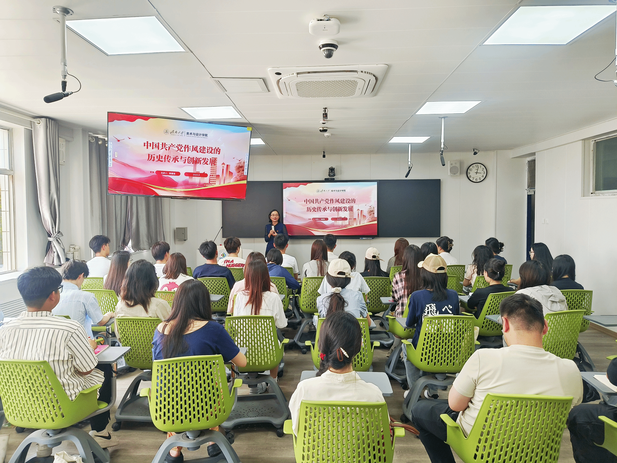 5月30日,学院党委书记陈春锋以“中国共产党作风建设的历史传承与创新发展”为主题,讲授廉洁思政课,课程结合深入贯彻中央八项规定精神学习教育,将党纪教育、党性教育和廉洁教育贯通融合。将正面教育引导和反面典型案例相结合,从革命战争时期的作风奠基、延安整风运动、新中国成立后的作风建设,再到中央八项规定制定落实,系统梳理党的作风建设历史脉络与创新成果,深刻阐明作风建设是党的生命线这一核心要义。