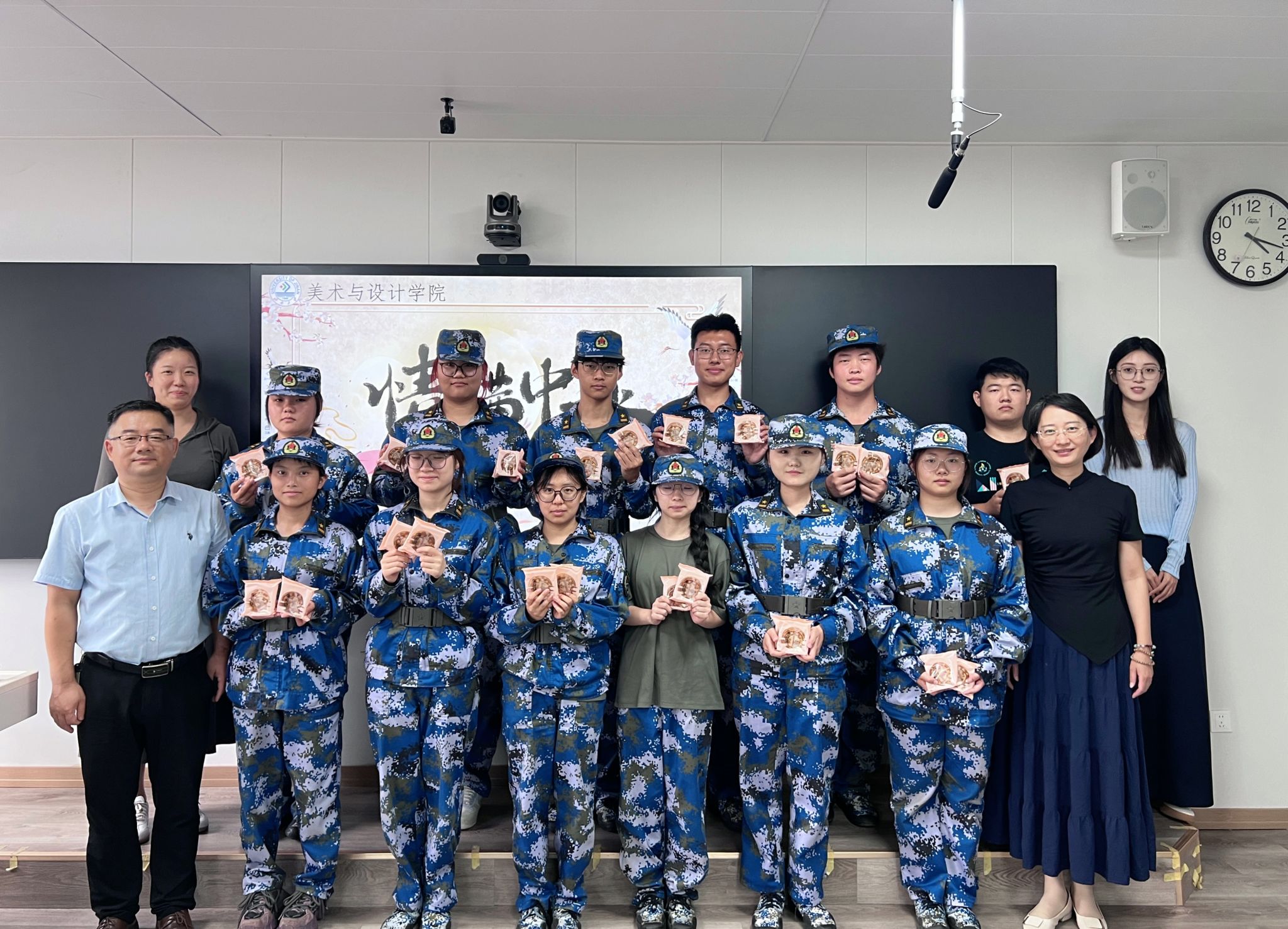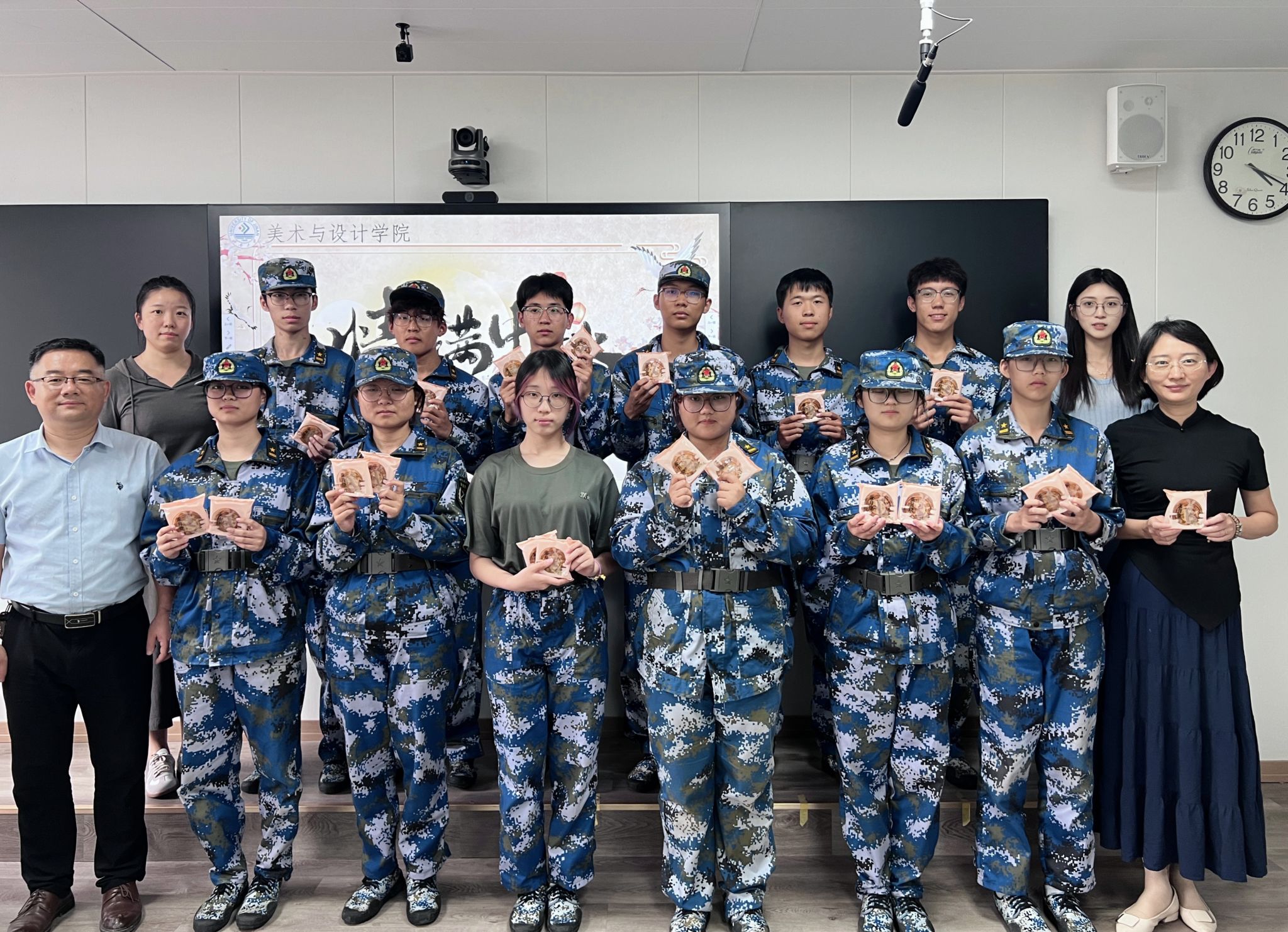 随后,活动迎来了温馨而感人的高潮——月饼发放仪式。学院精心准备了各式各样的月饼,寓意着团圆与美满。当一份份月饼递到同学们手中时,现场顿时洋溢着欢声笑语。同学们纷纷一起快乐地合影留念,定格了这个温馨的瞬间,每个人的脸上都充满着幸福的笑容,这不仅是一张照片,更是一份记忆,一份在中秋佳节这个特殊日子里,学院与新生共享的欢乐和温暖。