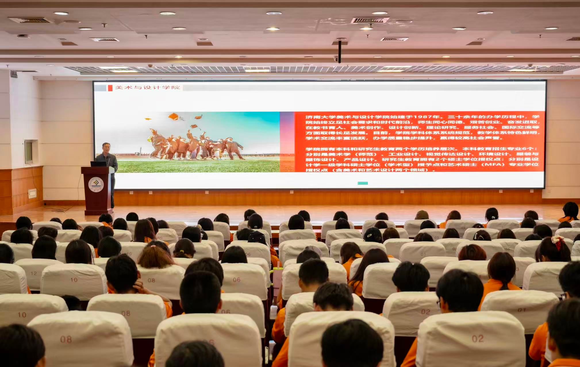 见面会后,杨海波为新生讲授入学教育第一课,他从学业规划、专业发展和人生理想等方面为新生上了一堂生动的思政课,勉励新生们要立鸿鹄志、怀家国情、勇敢逐梦,在艺术与设计的沃土上绘就青春华章。桑曙光为新生详细讲解了学籍管理、课程安排及相关教学事务,帮助同学们更好地适应学习节奏、明确成长路径。