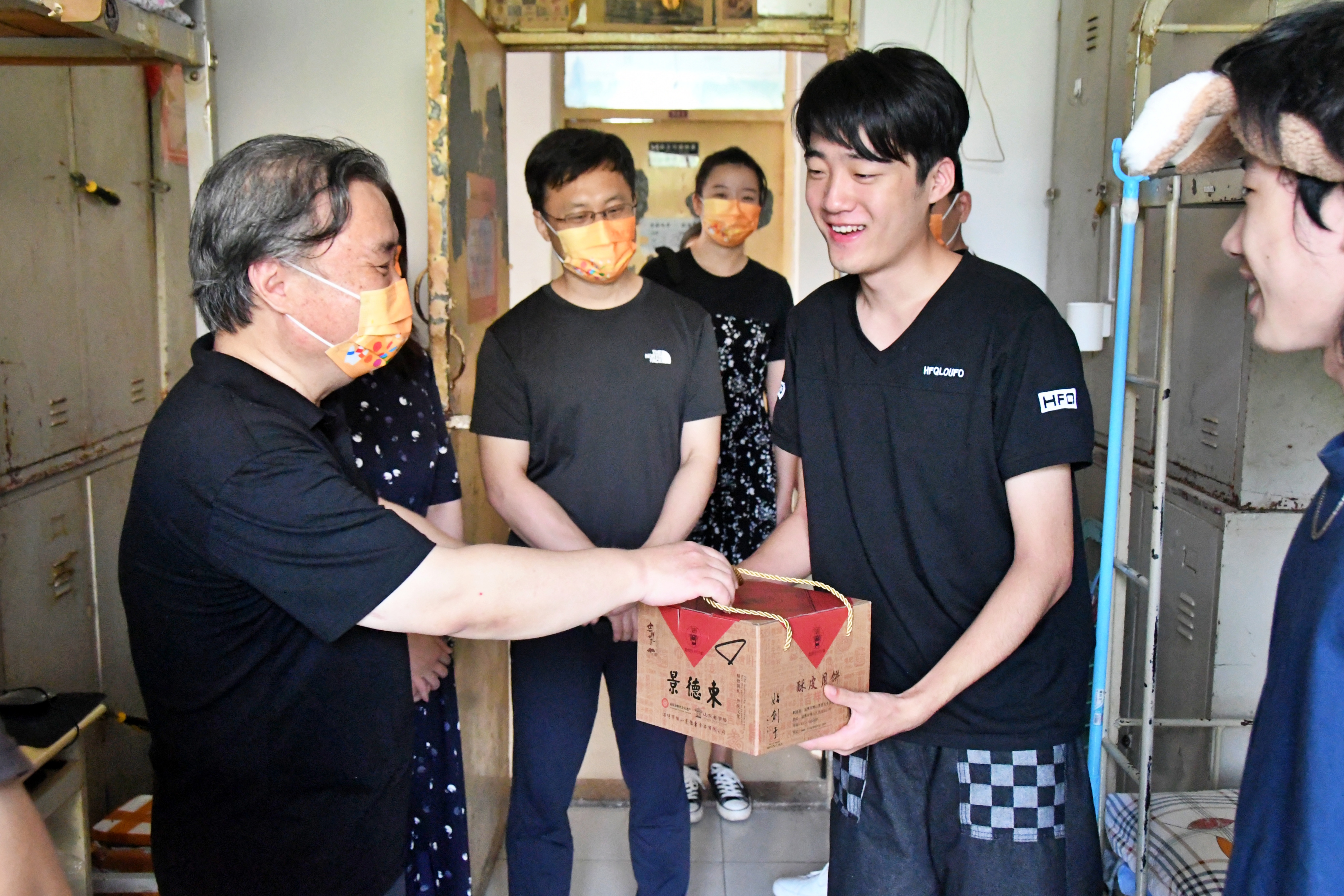 桂香万里月当空,中秋校园情意浓。在中秋佳节之际,因疫情防控需要,美术学院学生积极响应学校号召,留校过节。为缓解留校同学思乡之情,传递学校学院关怀,9月10日上午,学院组织中秋学生慰问活动,学院党委书记孙成豪,常务副院长陶国平,党委副书记、副院长李莉,副院长赵忠超及全体学工人员到宿舍进行了节日慰问,为同学们送上节日祝福和月饼礼盒。