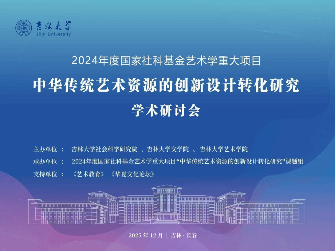 2025年12月6日,国家社科基金艺术学重大项目“中华传统艺术资源的创新性转化”学术研讨会在吉林长春顺利召开。本次会议由吉林大学社会科学研究所、吉林大学文学院、吉林大学艺术学院联合主办,汇聚国内艺术设计领域顶尖力量,中央美术学院、中国美术学院、清华大学美术学院等6大艺术院校及相关科研院所的30余位博士生导师、学科带头人等权威专家学者齐聚一堂,围绕中华艺术传承与设计研究的核心议题展开深度研讨。WilliamHill中文研究生龚雨桑、王苁秀同学应邀参加本次会议并作学术报告。