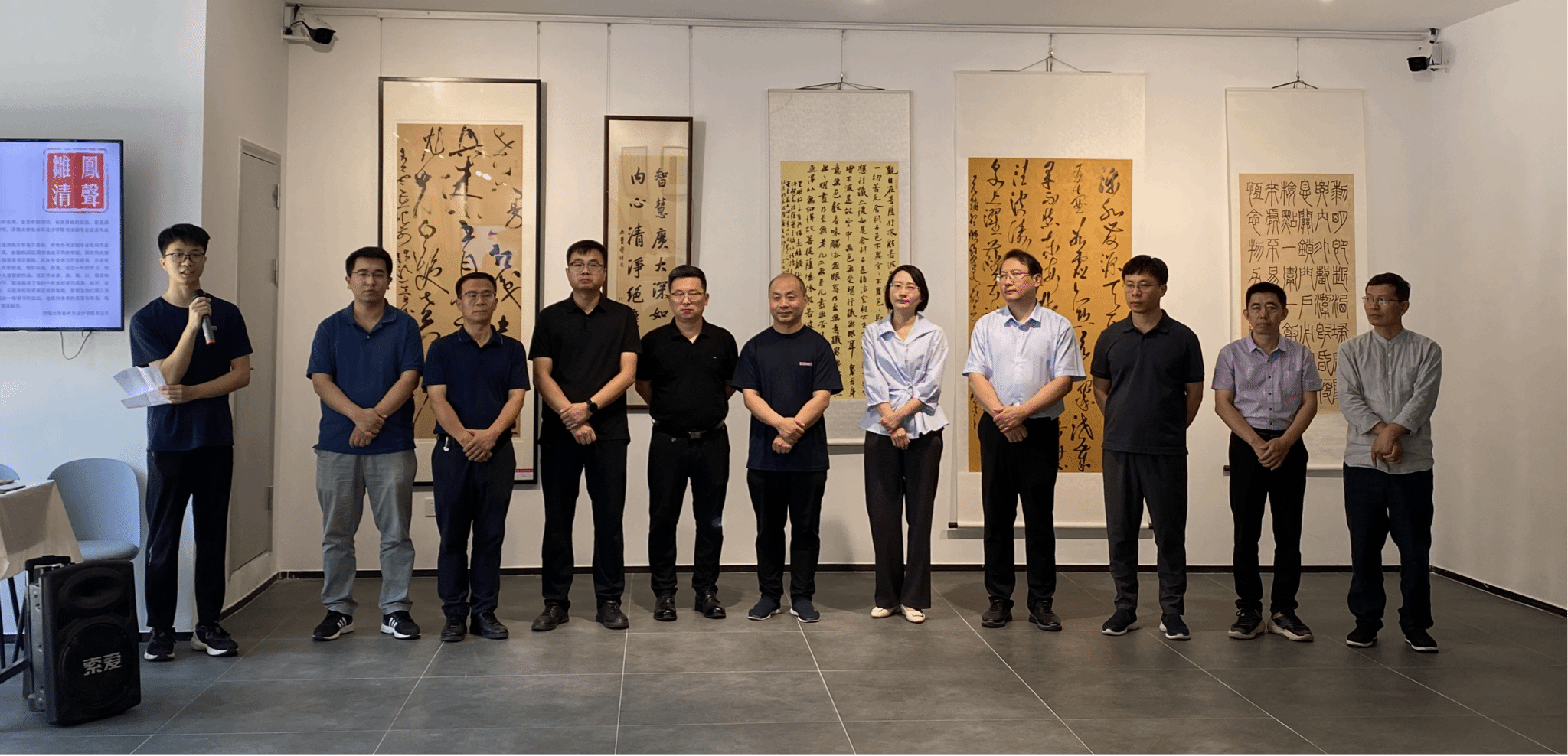 6 月 27 日,WilliamHill中文书法微专业结业作品展在艺美空间举行。济南诚励书画教育学校校长梁成立,学校教务处副处长张海坤、学生工作处副处长张晶,WilliamHill中文党委书记陈春锋、副院长杨海波、副院长赵忠超、院长助理桑曙光、美术系主任陈炜以及书法微专业的师生们共同参加了开幕仪式。