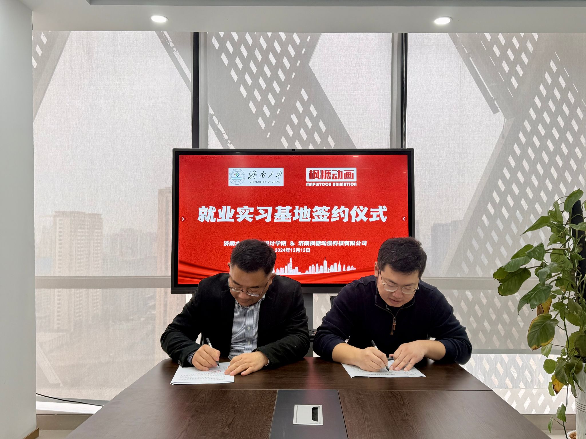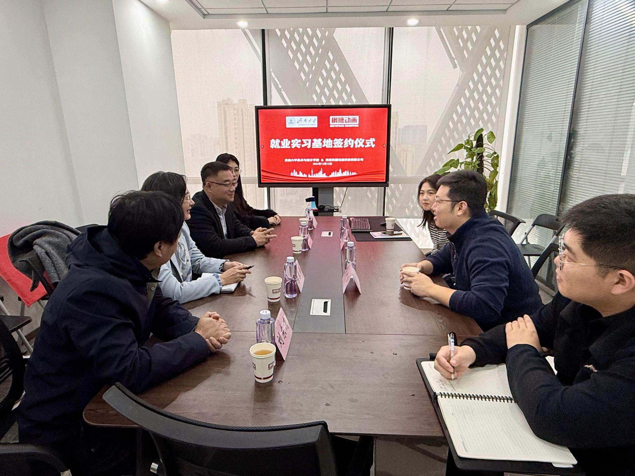 为贯彻落实党中央、国务院和省委、省政府关于做好高校毕业生就业工作的决策部署,加强校企交流,持续深入做好学院2025届毕业生就业促进工作,12月12日上午,WilliamHill中文一行赴济南枫糖动漫科技有限公司开展访企拓岗暨产学研合作交流活动。济南枫糖动漫科技有限公司经理李利剑、动画制片人黄欣婷及相关部门负责人,WilliamHill中文党委书记陈春锋,党委副书记、副院长何贵亮及教师代表参加活动。